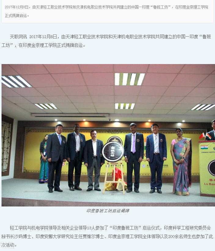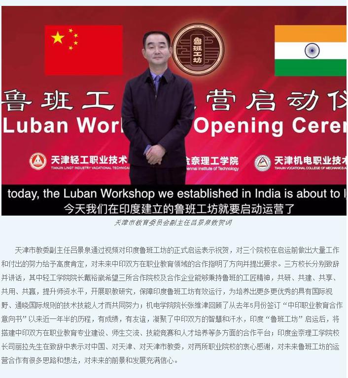 天津市第三家海外鲁班工坊――印度鲁班工坊正式启动运营