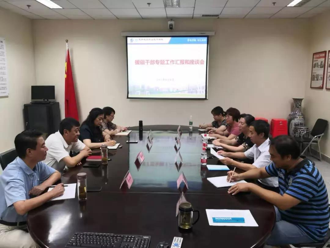 2019年8月8日,学院党委专题为暑假回津的秦宝军同志召开了援疆专题工作汇报和座谈会。会上,秦宝军同志全面梳理了近1年来在和田所做的工作,讲述了在和田地区发生的点滴故事和个人感受,与会同志切身感悟着援疆的艰辛与努力。学院党委书记戴裕崴对秦宝军同志的辛勤工作和取得成绩给予了充分肯定,同时也提出了殷切的希望,并要求学院各相关部门要提高政治站位,坚决完成好援疆任务,组织部门要落实好援疆干部工作的对接和服务。院长褚建伟,党委副书记胡如祥,副院长李云梅以及艺术工程学院、教务处等相关部门负责人出席会议。