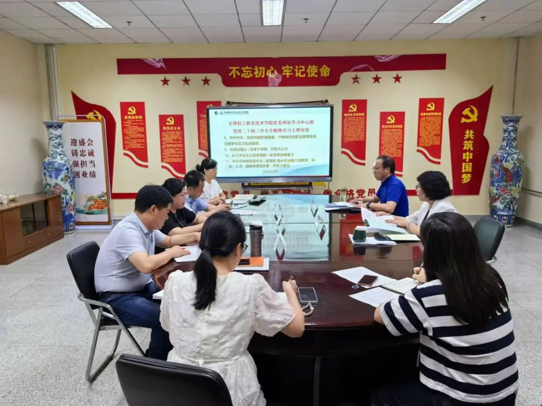 会议深入学习了中国共产党第二十届中央委员会第三次全体会议公报、《中共中央关于进一步全面深化改革、推进中国式现代化的决定》、习近平关于《中共中央关于进一步全面深化改革、推进中国式现代化的决定》的说明等内容,特别就涉及职业教育和党的建设有关内容进行了学习讨论,并跟进学习了习近平总书记近期重要讲话、论述和指示批示精神。
