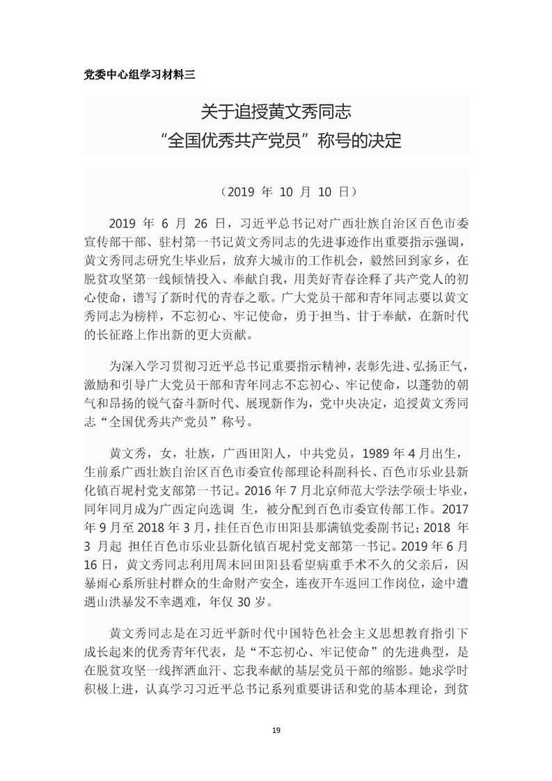 2019党委中心组第12次集中学习材料
