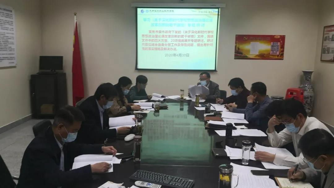 会议通过集中学习《团结合作是国际社会战胜疫情最有力武器》和国家安全法,进一步了解了中国人民在疫情防控中展现的中国力量、中国精神和中国效率以及中国对世界疫情控制做出的重要贡献;通过学习国家安全,了解国家安全的内涵、基本内容及其相关法律,进一步强化了国家安全意识和法律意识;通过集中学习市委、市政府《关于深化新时代学校思想政治理论课改革创新的若干措施》并围绕文件中的四大方面、20项措施展开责任分工和专题研讨,针对目前我院所存在的问题,每位院领导结合自身分管工作提出有针对性的落实措施及解决办法,下一步学院将出台办法予以具体贯彻落实;通过学习传达市委宣传部、市委教育工委关于意识形态工作专项检查情况的通报,查找院存在的共性问题,梳理2020年意识形态工作18项并逐一分工落实。