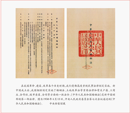 在我国革命、建设、改革各个历史时期,我们党都高度重视民事法律制定实施。革命战争年代,我们党在中央苏区、陕甘宁边区等局部地区就制定实施了涉及土地、婚姻、劳动、财经等方面的法律。新中国成立后,我国相继制定实施了婚姻法、土地改革法等重要法律和有关户籍、工商业、合作社、城市房屋、合同等方面的一批法令。我们党还于1954年、1962年、1979年、20014次启动制定和编纂民法典相关工作,但由于条件所限没有完成。