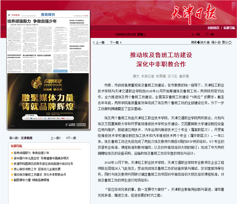 《天津日报》推动埃及鲁班工坊建设 深化中非职教合作