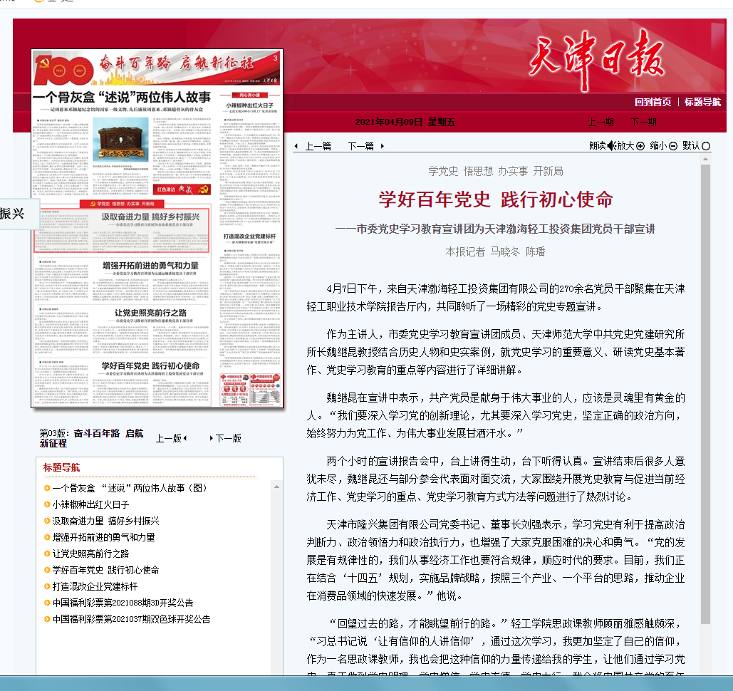──市委党史学习教育宣讲团为天津渤海轻工投资集团党员干部宣讲