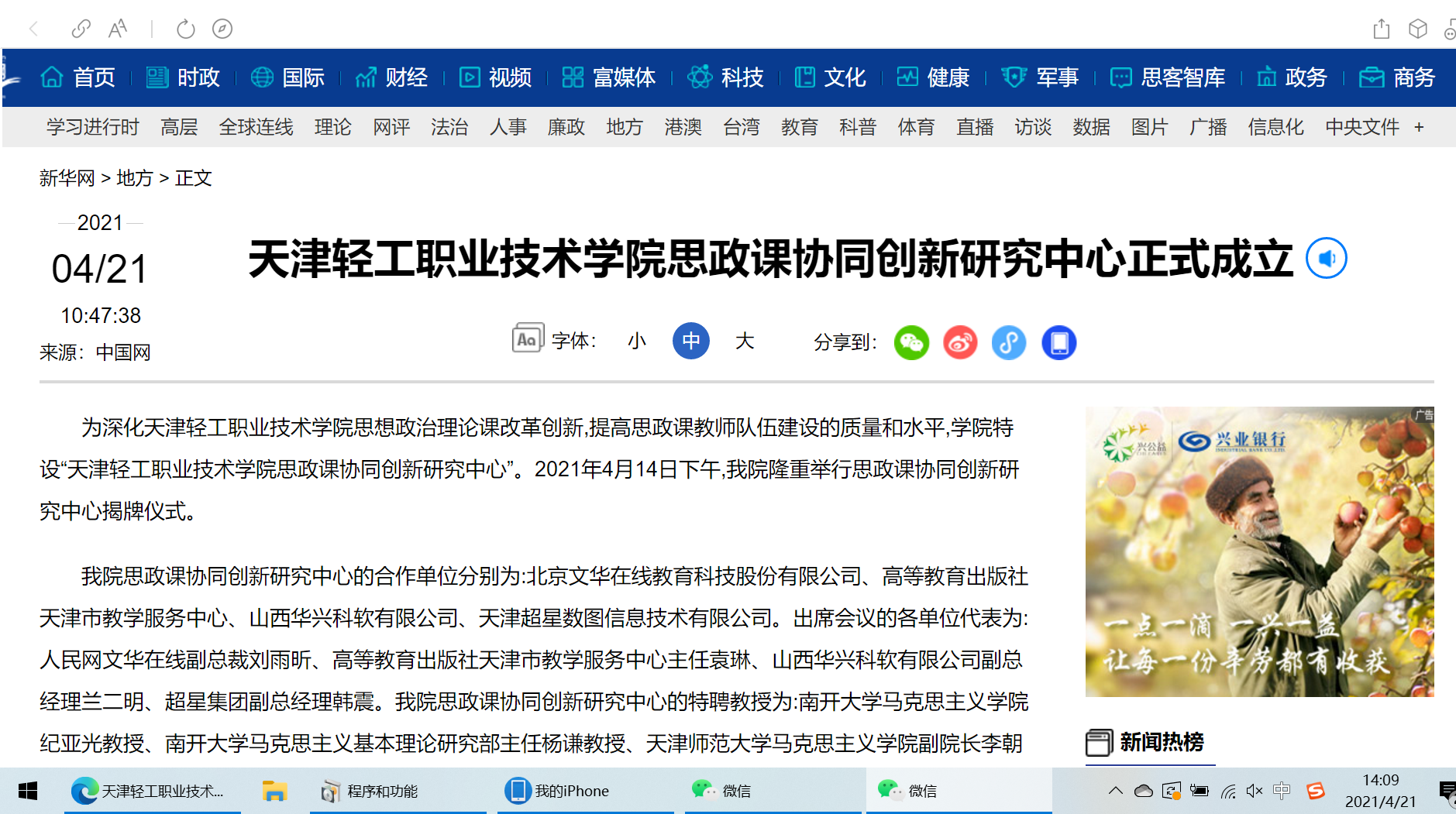 为深化新利18平台思想政治理论课改革创新,提高思政课教师队伍建设的质量和水平,学院特设“新利18平台思政课协同创新研究中心”。2021年4月14日下午,我院举行思政课协同创新研究中心揭牌仪式。