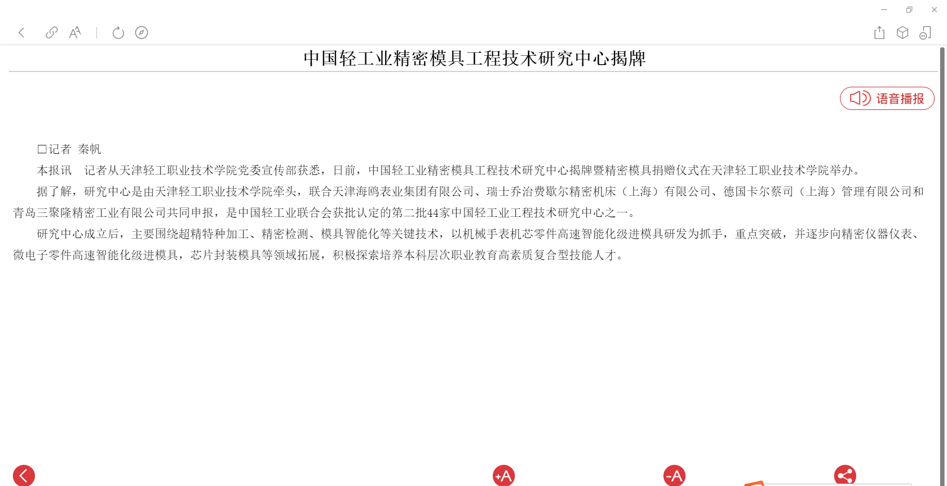 《天津工人报》:中国轻工业精密模具工程技术研究中心揭牌