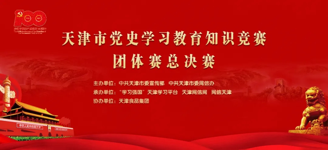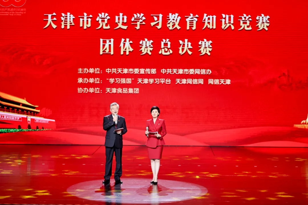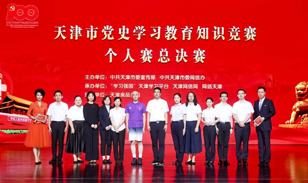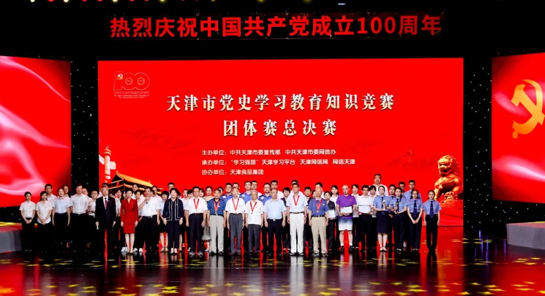 为深入学习贯彻习近平总书记在党史学习教育动员大会上的重要讲话精神,贯彻落实党中央和市委关于党史学习教育部署安排,推进全市党史学习教育深入开展,6月28日,由市委宣传部、市委网信办主办,“学习强国”天津学习平台、天津网信网、网信天津承办,天津食品集团协办的天津市党史学习教育知识竞赛活动在天津梅地亚大剧院举办总决赛。市委宣传部、市委网信办负责同志出席活动。