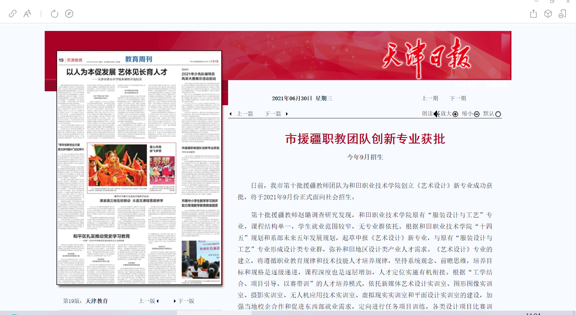 日前,我市第十批援疆教师团队为和田职业技术学院创立《艺术设计》新专业成功获批,将于2021年9月份正式面向社会招生。