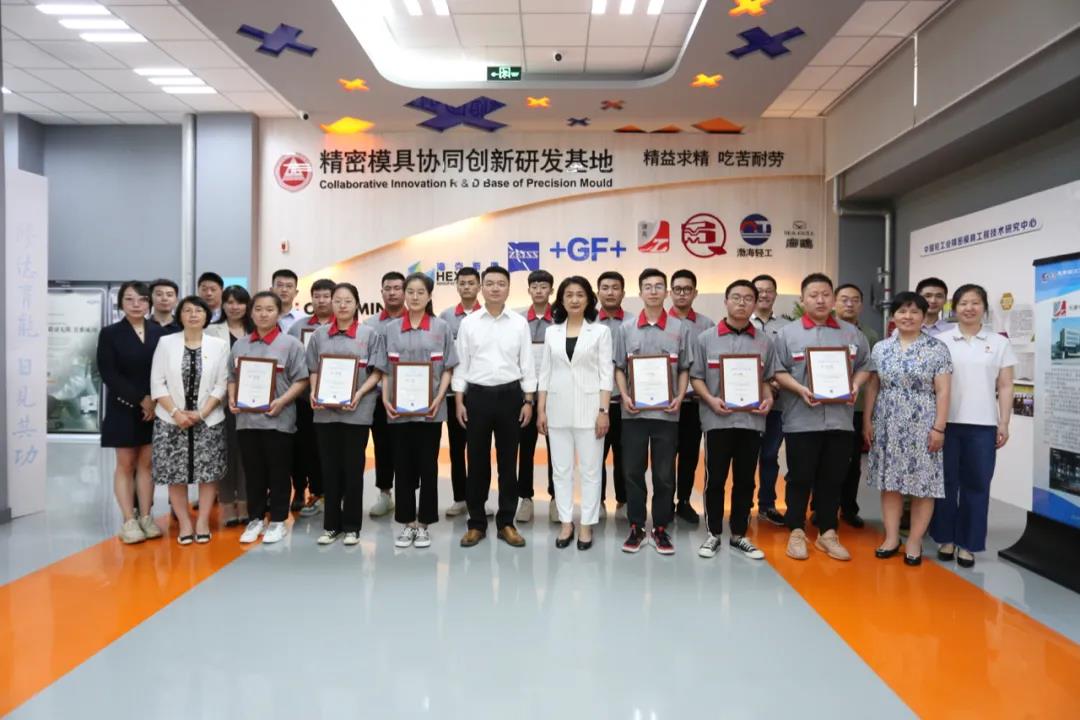 2018年1月,学校联合瑞士GF加工方案集团、德国卡尔蔡司公司等企业共同建设精密模具协同创新中心,在教学方面,创建“智慧学习工场”模式,利用引进企业智能化生产的先进设备,将行业前沿技术及时融入课程,将智能化生产标准和要求及时转化为学生岗位能力的培养标准,实现课程体系的重构和专业的提升,将追求精密的匠心精神、匠技传承和匠人品质直接融入模具专业新工匠人才的培养、训练和打造。