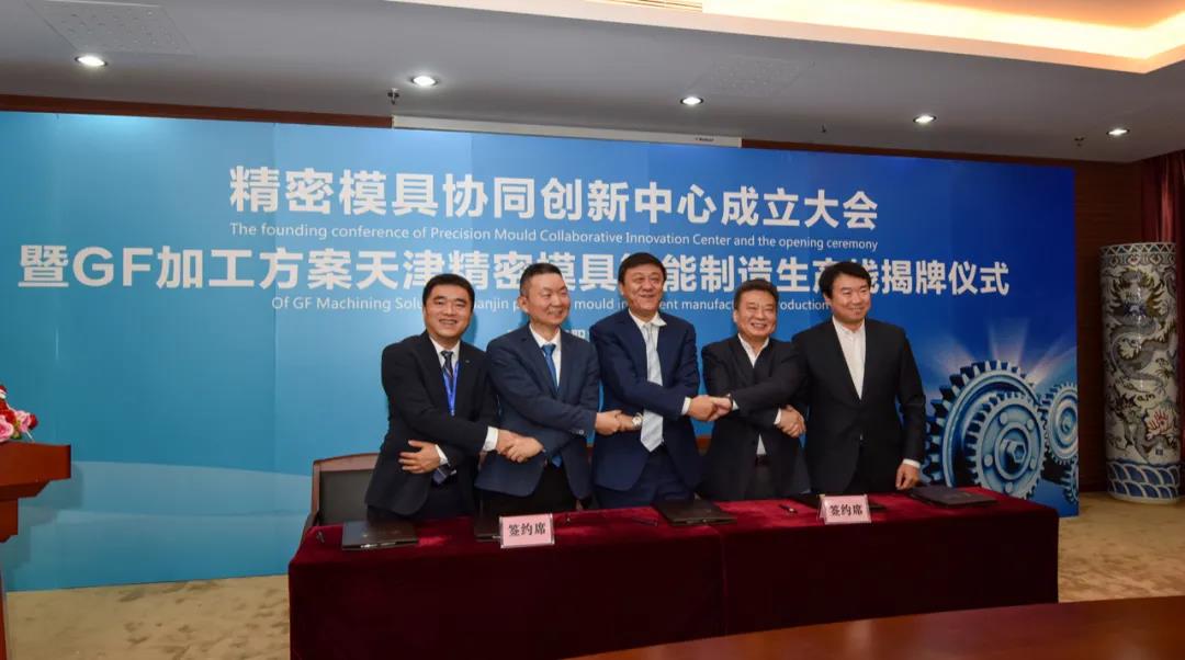2019年5月23日,新利18平台围绕精密制造、智能制造的行业转型升级需要,与世界知名企业瑞士GF加工方案集团、中国模具工业协会、天津汽车模具股份有限公司、银宝山新科技股份有限公司合作共建国内模具行业首个多元构成的模具产业学院揭牌成立。