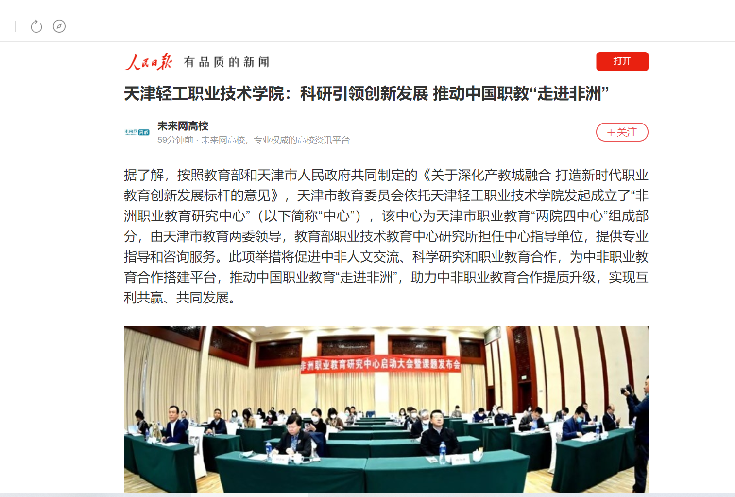 人民日报:新利18平台:科研引领创新发展 推动中国职教“走进非洲”