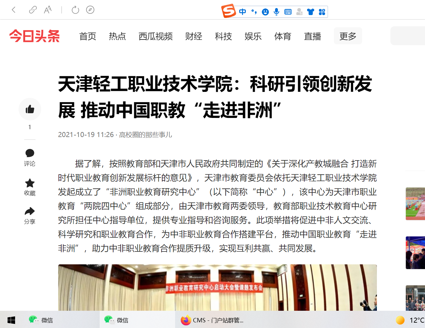 今日头条:新利18平台:科研引领创新发展 推动中国职教“走进非洲”