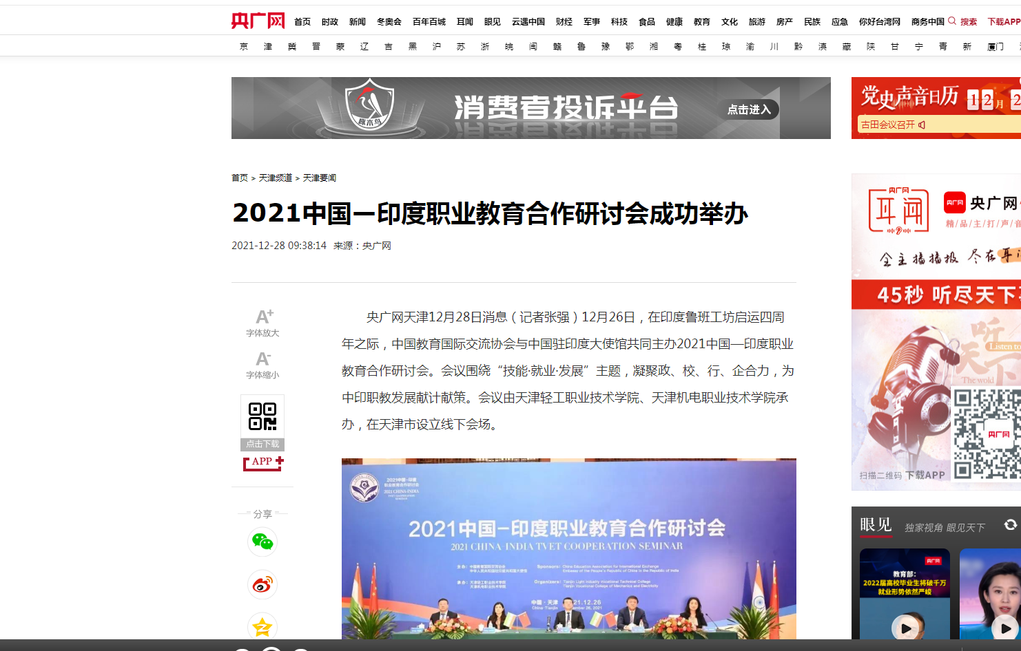 央广网:2021中国—印度职业教育合作研讨会成功举办