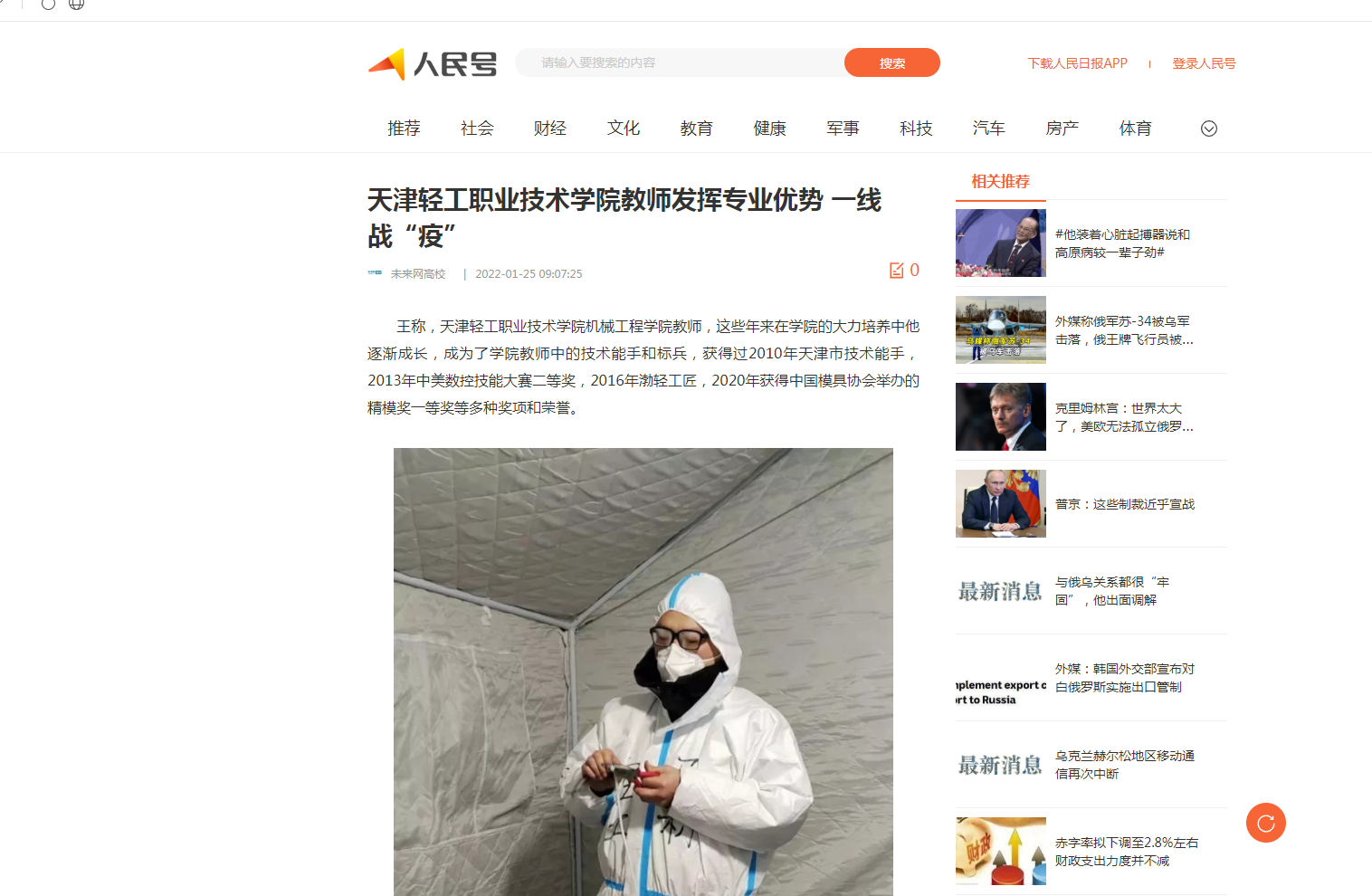 在学院下沉干部支援社区的活动中和志愿服务津南的队伍中,他用其善于发现的眼光,勇于探索和实践的工匠精神,发挥专业优势,与大家齐力战“疫”,体现了抗击疫情中的“职教力量”。