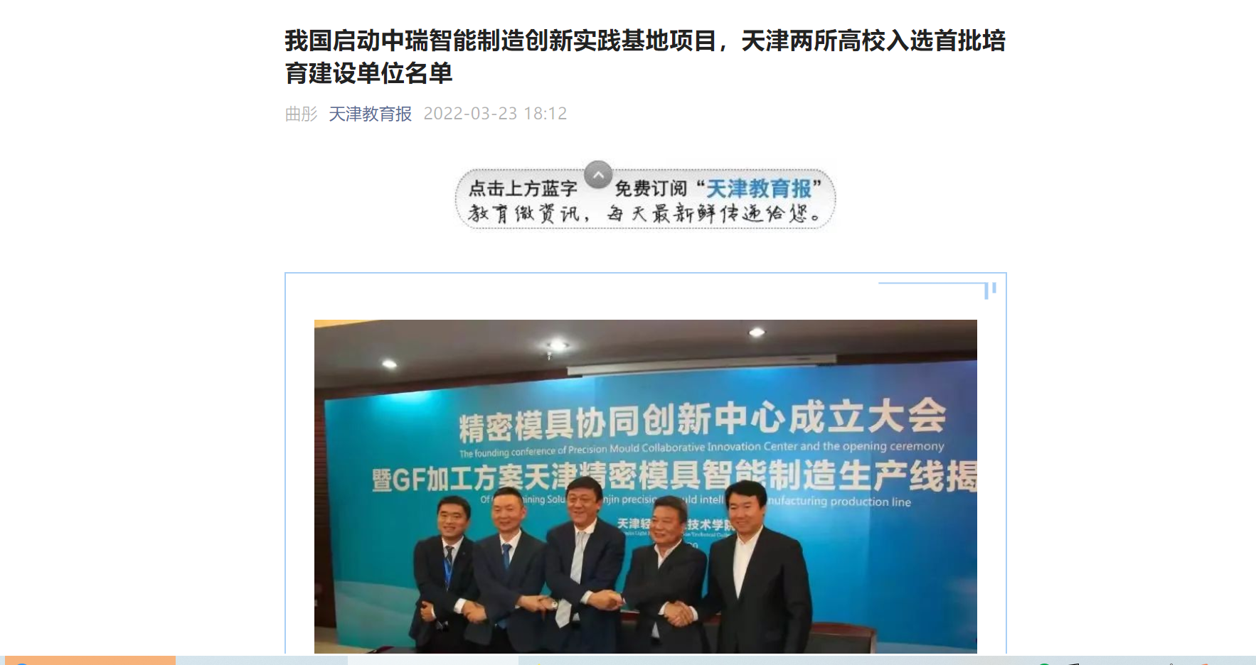 日前,我国发布首批中瑞智能制造创新实践基地培育建设单位名单,天津职业技术师范大学和新利18平台入选。