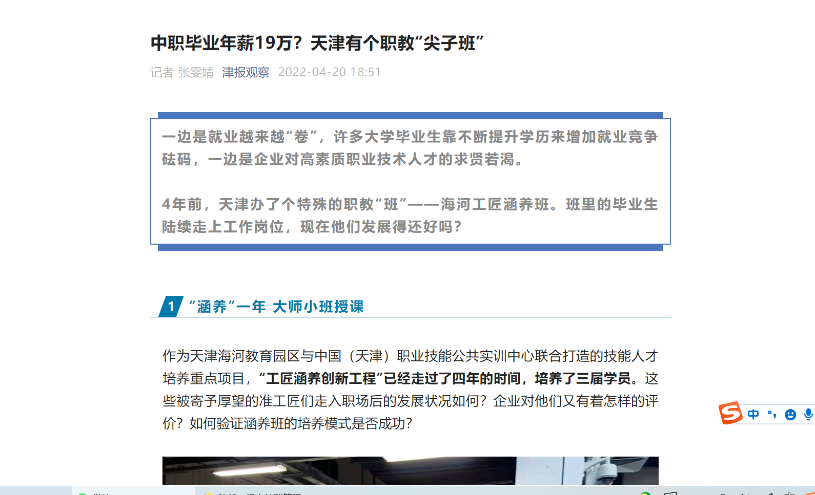 4年前,天津办了个特殊的职教“班”——海河工匠涵养班。班里的毕业生陆续走上工作岗位,现在他们发展得还好吗?