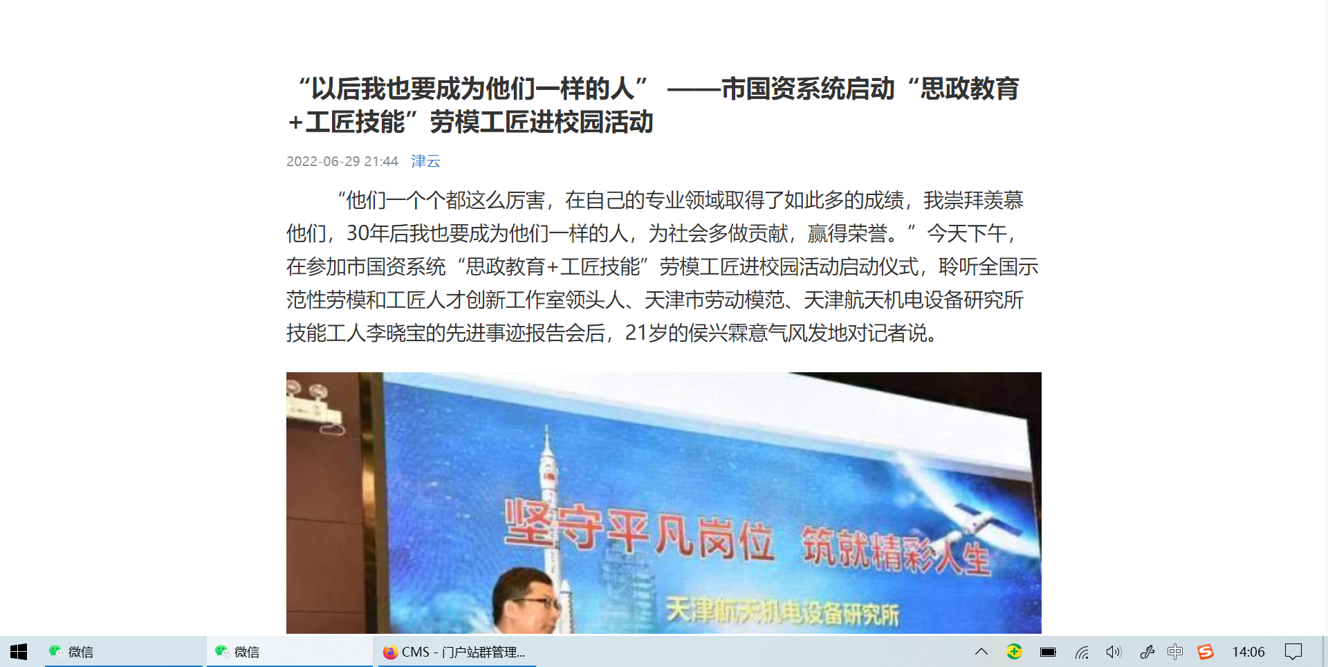“他们一个个都这么厉害,在自己的专业领域取得了如此多的成绩,我崇拜羡慕他们,30年后我也要成为他们一样的人,为社会多做贡献,赢得荣誉。”今天下午,在参加市国资系统“思政教育+工匠技能”劳模工匠进校园活动启动仪式,聆听全国示范性劳模和工匠人才创新工作室领头人、天津市劳动模范、天津航天机电设备研究所技能工人李晓宝的先进事迹报告会后,21岁的侯兴霖意气风发地对记者说。