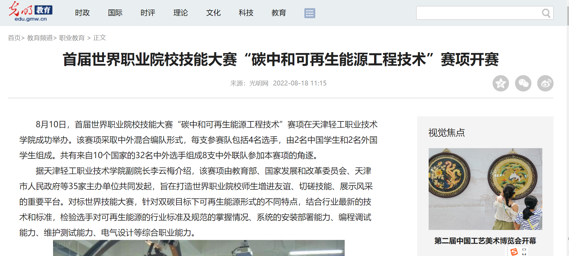 本次比赛有效深化了职业院校国际交流合作,增强了中外职业教育互学互鉴,促进可再生能源技能人才培养取长补短,为全面提高新能源领域专业教学质量、培养高素质技术技能人才做出贡献。(戈凯) 责编:田媛