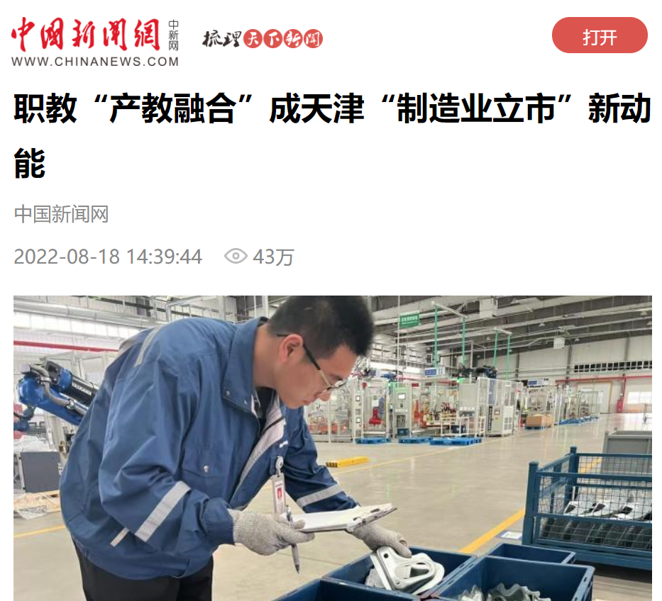 中国新闻网:职教“产教融合”成天津“制造业立市”新动能