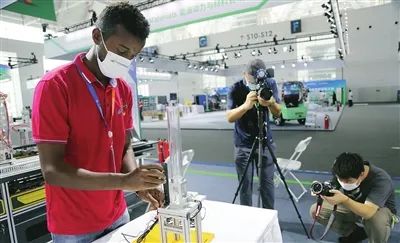 ▲来自埃塞俄比亚的留学生在天津职业技术师范大学接受培训