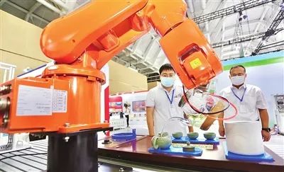▲天津机电职业技术学院展示工业机器人与智能视觉系统应用设备