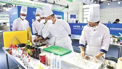 ▲在S9馆的中国制造与传统文化赛项单元,天津市经济贸易学校承办中餐烹饪展演类赛项