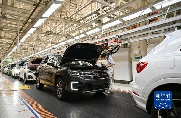 ▲工人在天津经济技术开发区一汽-大众华北基地的生产线上工作
