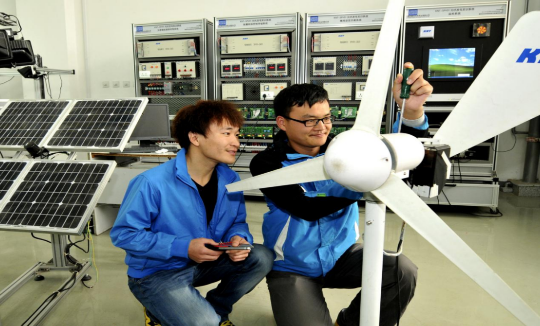 风光互补技术实训室内学生实训场景(央广网发 学院供图)