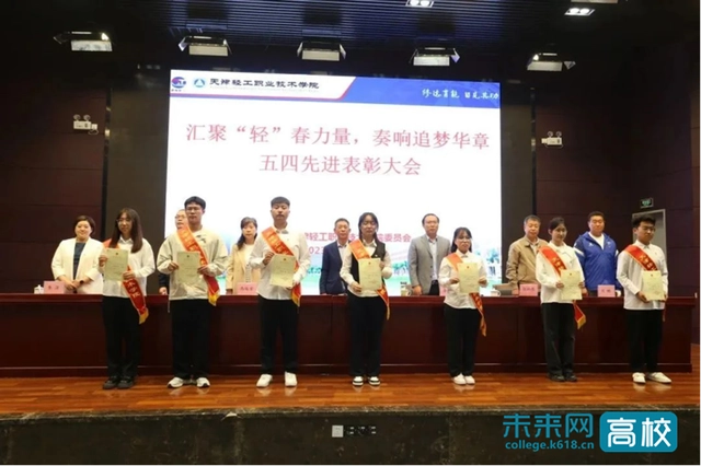 五四青年节之际,新利18平台团委举行了2022-2023年度“汇聚‘轻’春力量,奏响追梦华章”表彰大会。出席大会的领导有天津市河北区环境卫生管理一所工人、天津市总工会兼职副主席徐文华,新利18平台党委副书记、副院长李子铮,学工部部长马延宏,各二级学院党支部书记。会议由学院团委书记刘健同志主持,各二级学院党支部副书记、团总支书记和相关职能处室负责同志列席。