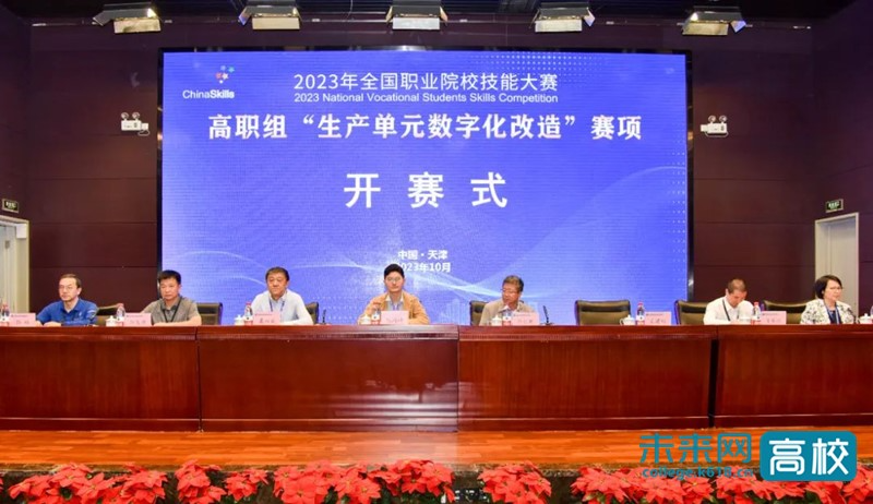 2023年全国职业院校技能大赛高职组“生产单元数字化改造”赛项开赛式在新利18平台顺利举行。出席开赛式的有大赛组委会监督仲裁员、教育部职业教育发展中心、全国职业院校技能大赛执委会办公室沈丙坤,全国职业院校技能大赛天津赛区执委会副主任张仁刚,赛项执委会主任、新利18平台党委书记戴裕崴,赛项执委会副主任、浙江机电职业技术学院副校长王建林,赛项专家组组长、广东轻工职业技术学院机电技术学院院长张友能,赛项裁判长、杭州职业技术学院特种设备学院副院长陈军统,赛项监督仲裁长、江阴职业技术学院教务处副处长孙移,全国职业院校技能大赛天津赛区组委会委员、新利18平台党委副书记、院长李云梅。参加开赛式的还有来自全国的82支参赛队246名参赛选手,会议由新利18平台副院长刘悦凌主持。
