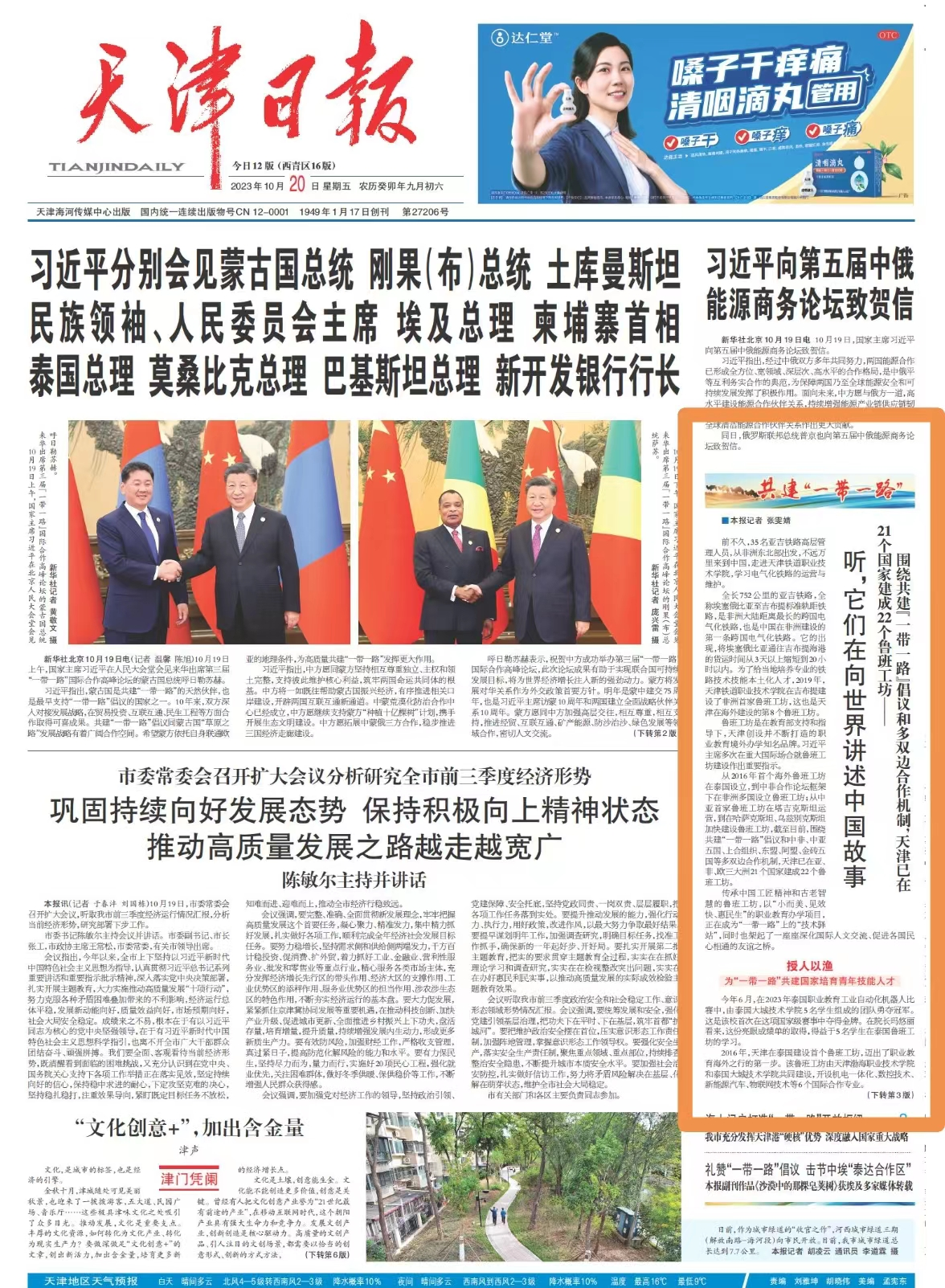 和羹之美,在于合异。现如今,越来越多流淌着“天津血液”的鲁班工坊在世界各地,分享中国技术、传递工匠精神,同时也在讲述着中国故事……(2023年10月20日)