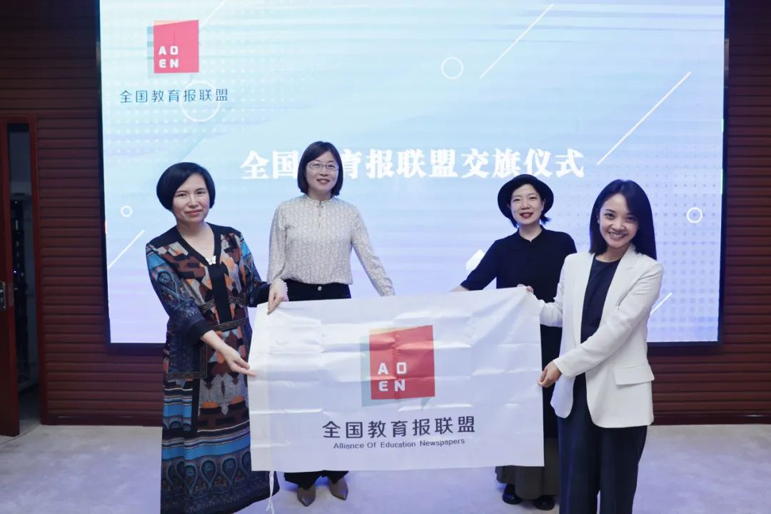 年会最后,举行了联盟会旗交接仪式。会旗从天津教育报刊社传递给四川省教育融媒体中心《教育导报》。