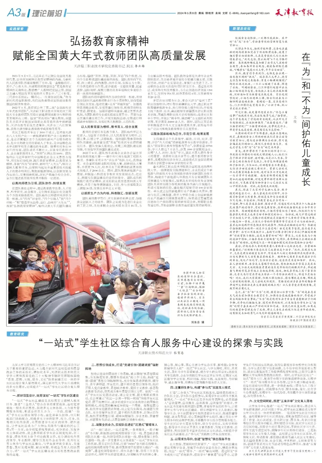 2023年9月9日习近平总书记致信全国优秀教师代表,信中深刻阐释出教育家精神的内涵,为新时代人民教师队伍建设指明了方向,是一盏指路明灯。其中“心有大我、至诚报国的理想信念”更是教育家精神的灵魂所在,激励着广大教师把爱国之情、报国之志融入祖国改革发展的伟大事业中去。“三寸粉笔,三尺讲台系国运;一颗丹心,一生秉烛铸民魂。”作为新时代的高职教师,我们肩负着推动加快建设教育强国的职责和使命。