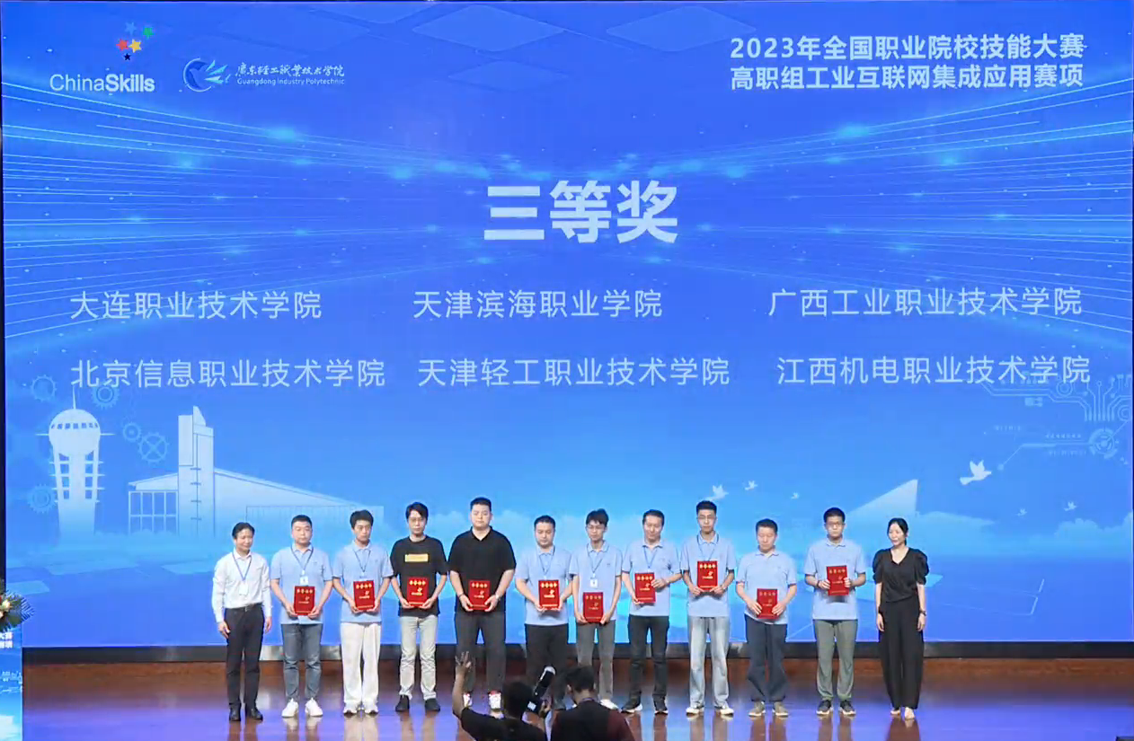 近日,2023年全国职业院校技能大赛高职组工业互联网集成应用赛项在广东轻工职业技术学院举行,新利18平台电子信息与自动化学院李娜副院长带队,教师张杰、学生段智坤代表天津市参赛,与来自全国各省、自治区和直辖市共57支队伍同场竞技。