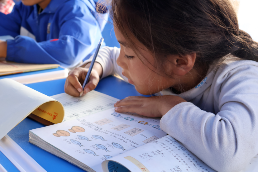 为给孩子们打好学习基础,蒋晓雪还特别关注培养学生的数学能力。在教孩子做数学题的时候,她发现二年级的才旦卓玛很有数学天赋。“二年级的口算题,卓玛能连做十几页一道题都不错,后来我就给她提升难度,做高年级的数学题,发现她四年级的题也能全对,甚至可以越级上数学课。”蒋晓雪说道,才旦卓玛藏语里是“仙女”的意思,卓玛如她的名字一样,是一个聪慧美丽的小姑娘,我会竭尽所能地帮助她,让她学习到更多知识技巧,不让她的天赋被埋没。
