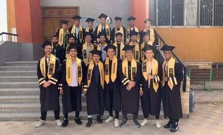 埃及鲁班工坊(开罗高级维修技术学校)首届毕业生合影,其中4名学生于2024年9月到天津交通职业学院新能源汽车技术专业继续深造。