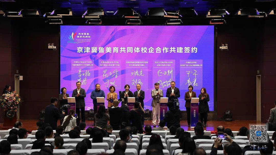 活动中,亚太地区手工艺大师“潘德月大师工作室”揭牌。京津冀鲁参建院校和企业代表进行校企共建签约仪式,未来将在全方位整合美育资源、全维度融合美育场景、全流程重塑美育生态等方面“牵手”合作,着力提高美育工作成效。活动还进行了美育教材、研究成果发布。