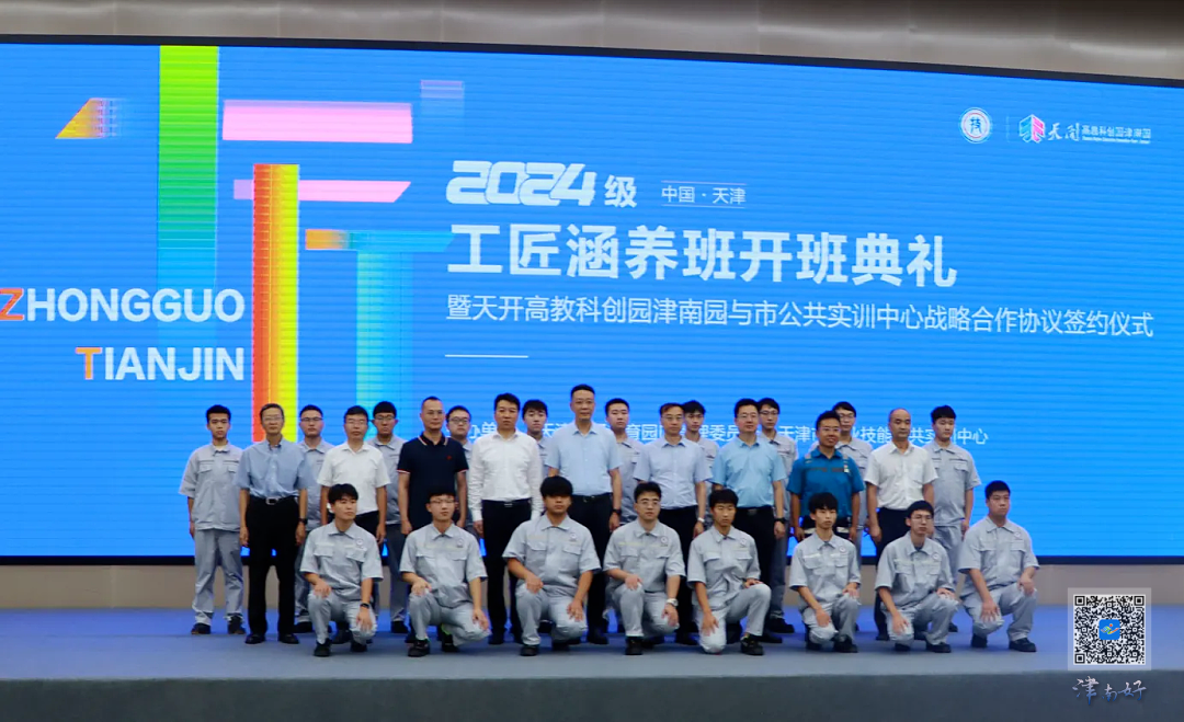 “上课基本不用PPT,主要靠动手实践。课上,我们会直接把电子元器件拆卸重组,去学习了解它的物理构造和生产原理,这样的教学方式能让我们学得更深入、更透彻。同时,晨跑等体能训练,每周不间断。追求细节的严谨、做事的踏实、工作的韧劲,我们感觉,开班3个月来,素质和能力都在持续地全面提升。”在中国(天津)职业技能公共实训中心,来自2024级“工匠涵养班”的18名学员如是说。“工匠涵养班”是天津海河教育园区管委会与中国(天津)职业技能公共实训中心在全国首创的产教融合人才培养模式,每年选拔一批立志从事技术技能工作的“好苗子”,瞄准市场和产业需求,聘请国家级技能大师授课,订单式培养一年。涵养班要经过理论测试、实操考核、心理测试、面试等多个环节综合选拔,采用小班化、工厂化、模块化、项目化的教学新模式,开展多层次、多方向、组合式训练。