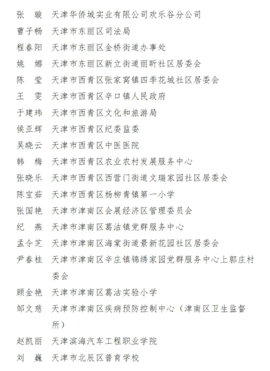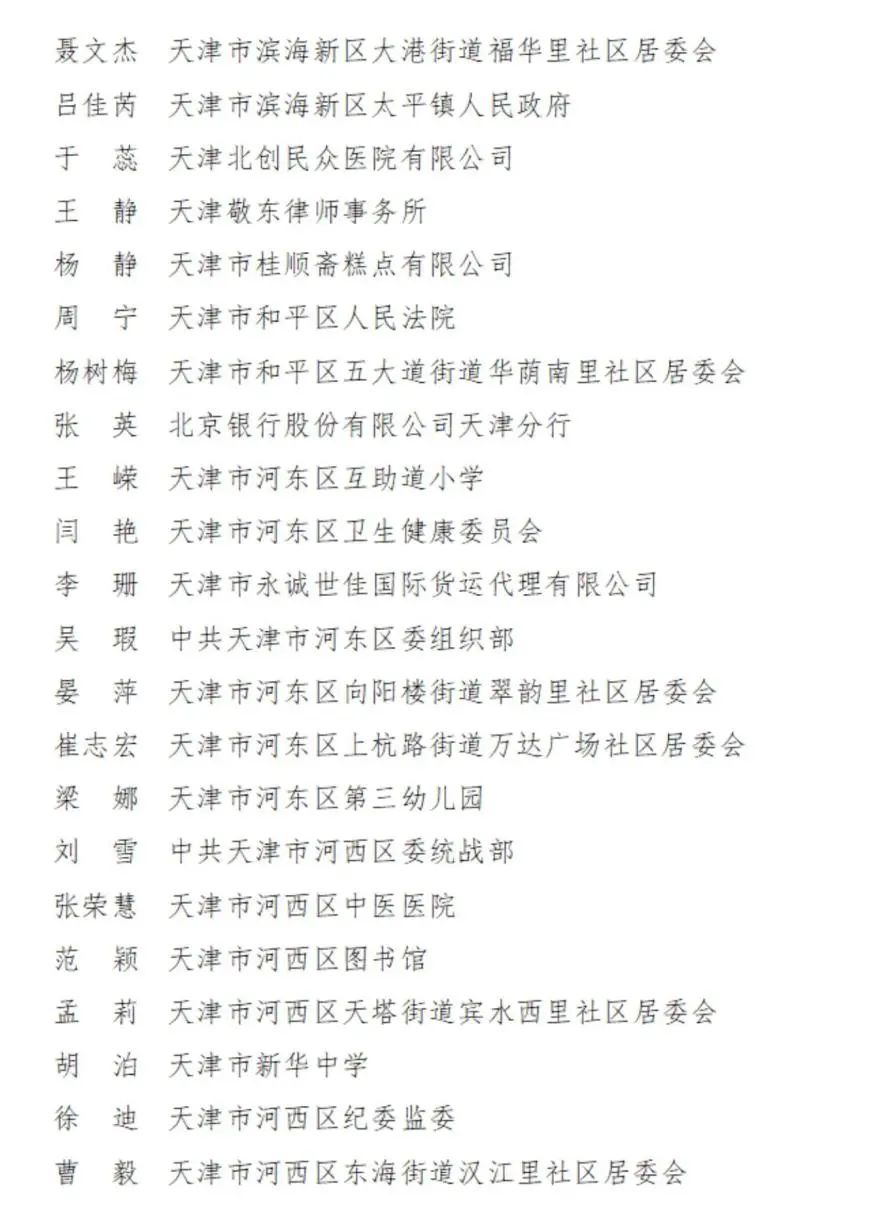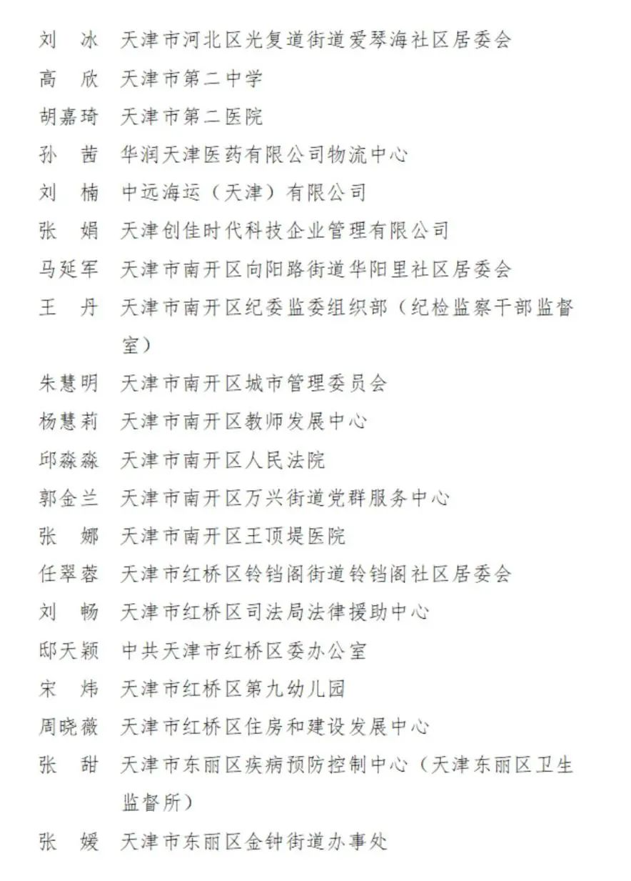 2023-2024年度天津市三八红旗手名单