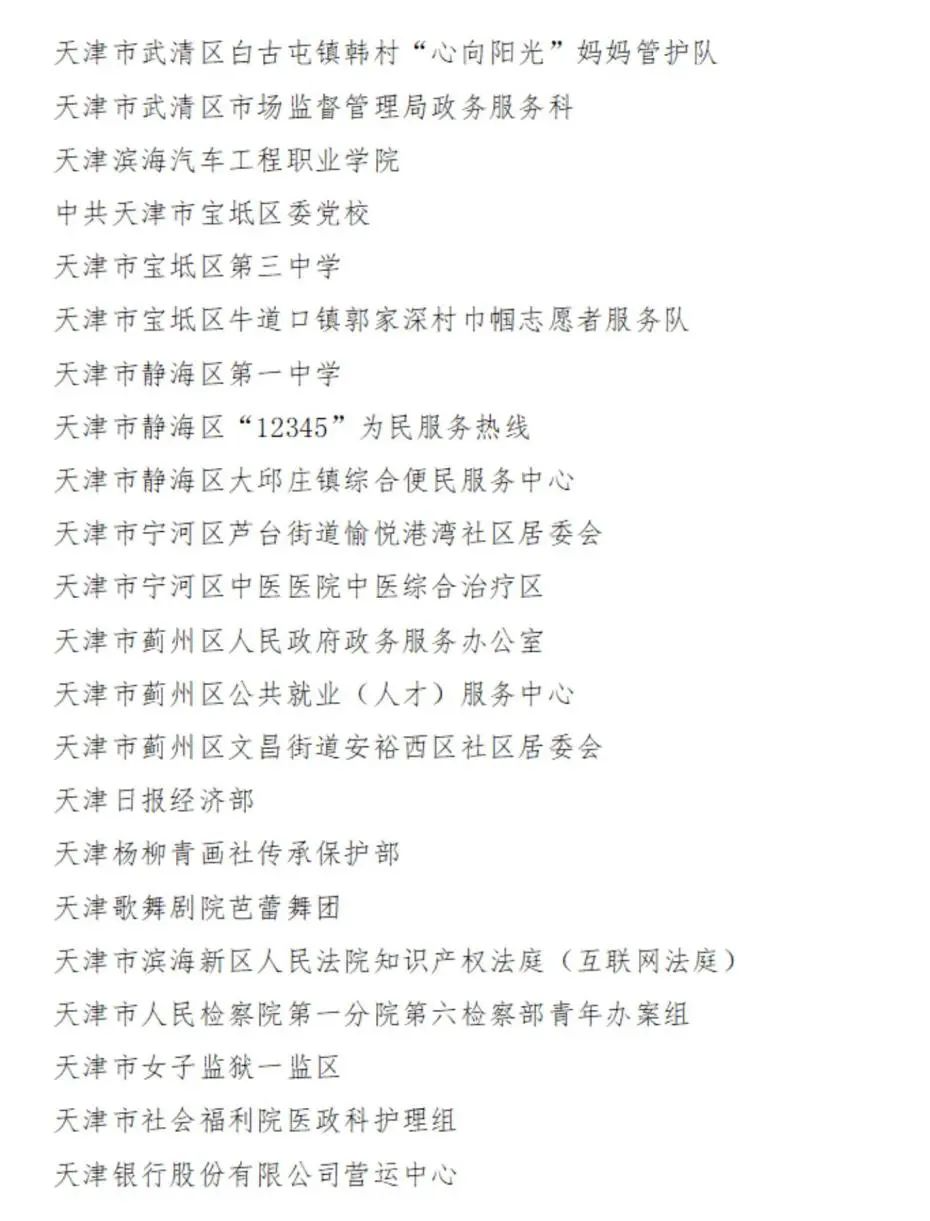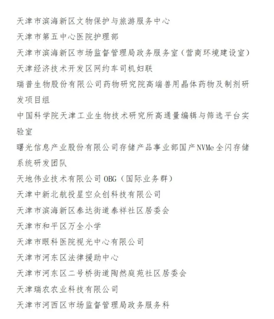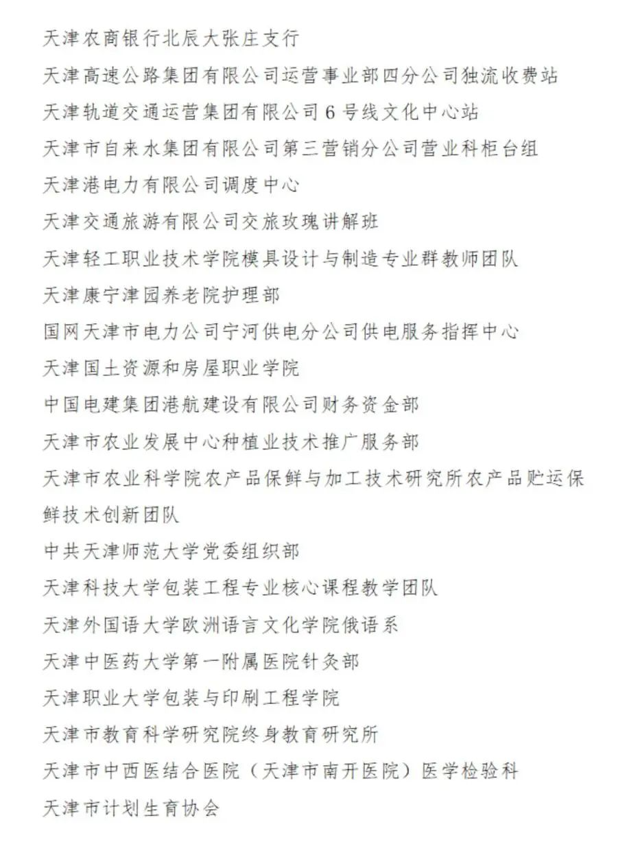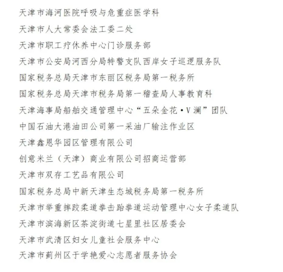 2023-2024年度天津市三八红旗集体名单