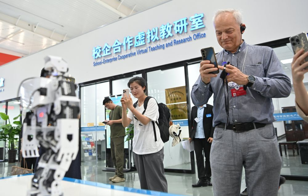 记者观察到,参观的上合组织国家嘉宾听得仔细,时不时与讲解员交流,感叹中国职业教育的国际化成就。