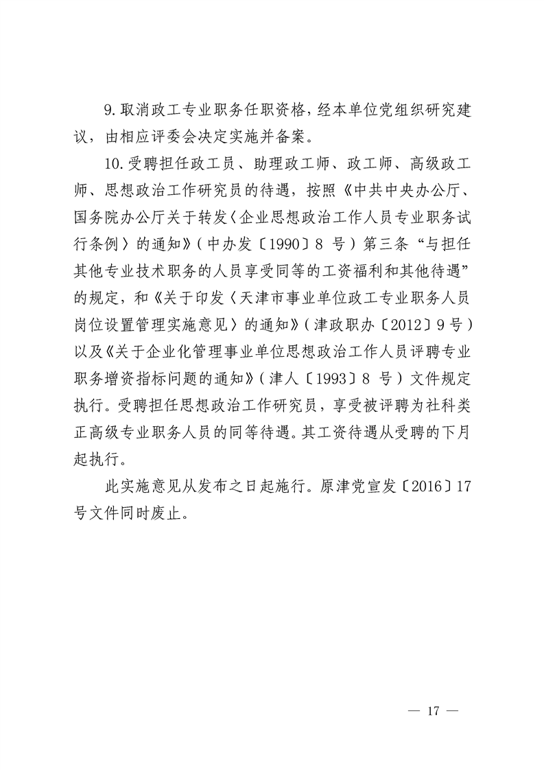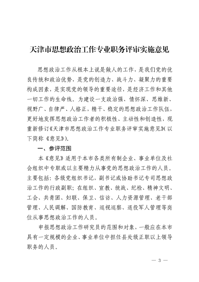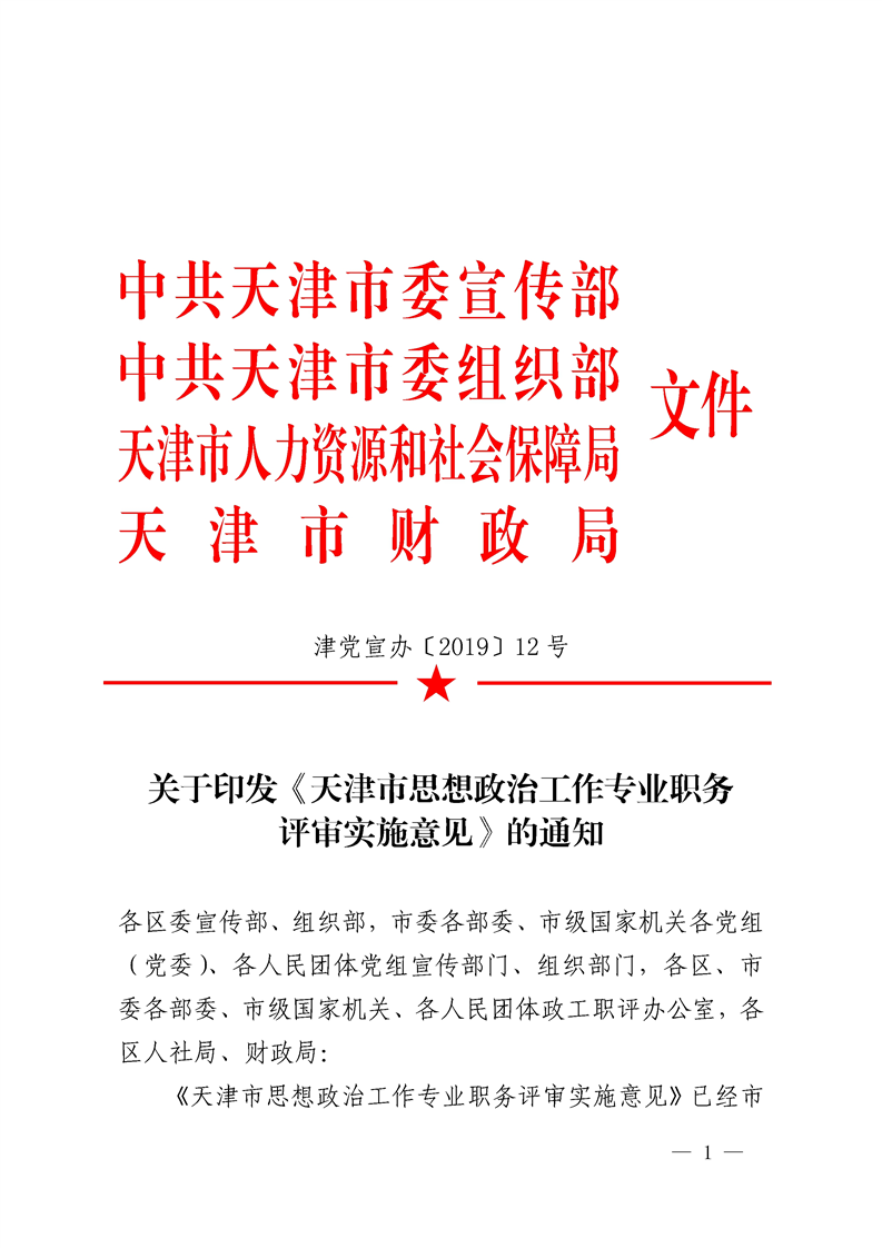 关于印发《天津市思想政治工作专业职务评审实施意见》的通知