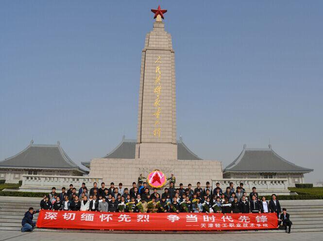 3月28日,在清明节来临之际,为了纪念这个中华民族的传统节日,引导大学生弘扬爱国主义精神,加强励志感恩教育。学院团委、学生会、邓研会、青年志愿者协会、学院阳光助学协会组织约100名同学在学工部部长郑文柱、资助老师李忠波的引领下,来到天津市烈士陵园开展了“缅怀革命先烈,争做时代先锋”的扫墓活动,在烈士陵园的革命英雄纪念碑前举行了庄严的扫墓仪式。烈士陵园春风缕缕、阳光明媚,烈士纪念碑上刻着的“人民英雄,永垂不朽”几个刚劲有力的大字,在周围那郁郁葱葱的苍松翠柏的衬托下显得格外醒目。此时此刻同学们的心情格外沉重,他们没有了往日的喧闹,没有了嬉笑声,都静静地肃立着。