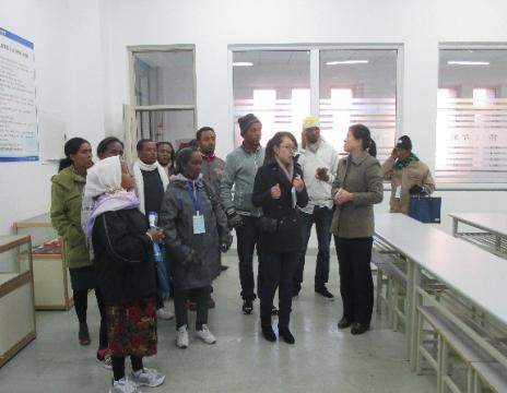 2015年12月15日上午,由中国教育部主办、天津职业技术师范大学承办的来自埃塞俄比亚的12名职业教育官员组成的“埃塞俄比亚职业教育官员研究班”一行12人在天津职业技术师范大学职业教育学院教师孙思玉、陈乐冉的陪同下到我院参观访问。副院长李云梅和国际交流处处长齐?B接待了研修团。