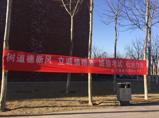 为保障诚信考试的顺利进行,学工部及各二级学院开展了大量的准备工作。教学楼前悬挂宣传条幅,召开“诚信考试宣誓大会”,学生签订诚信考试承诺书,敦促学生严格履行自己的庄严承诺,做诚实守信的大学生。在整个考试过程中,学生在无监考人员、无监控设备的前提下,端正考风、严肃考纪、文明答题、诚信应考,在公平、公正、公开的竞争平台中自我检验,以诚信的行为铸就诚信的人格,用实际行动营造了良好的学风、考风,塑造了新时代大学生形象。
