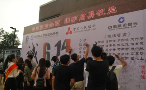 2016年6月14日,新利18平台经济管理学院在一食堂门口举办以“学习征信知识,维护自身利益”为主题的6.14信用记录关爱日宣传活动。此次活动由经济管理学院与中国人民银行天津分行、中国建设银行天津分行联合主办。经管学院领导、人民银行领导和建设银行领导出席了此次宣传活动。作为信用管理专业首次开展的专业教育实践活动,不仅巩固了信用专业学生的专业知识、创新了专业实践形式、增强了未来作为信用人员的职业责任感和使命感,更重要的是依托信用管理专业这个平台让更多其他专业的学生了解到信用的重要性、主动关心自己的信用记录、形成健康的信用行为习惯、提高个人信用意识并将可贵的信用意识播撒到校园的每寸角落。