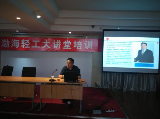 首先,渤海集团人力资源部陈永新发言,他提出为进一步推动全系统专业技术人才和中层管理人员的知识更新,全面做好素质工程提升教育,充分运用院校培训资源,2016年度集团将继续在系统内组织开展“渤海轻工大讲堂”系列培训课程。