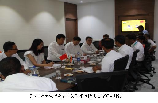 本次出访日程安排充实紧凑,所到之处都受到热情的接待,中印双方沟通洽谈高效顺利,达到了预期目的。印度金奈理工学院提供近千平方米的建设空间,双方就“鲁班工院”设计装修、合作专业、设备的购置及运输费用问题、远程教学等进行洽谈并达成以下共识:一、中方负责“鲁班工院”的整体设计,印方负责实施装修,装修要加入中国元素,体现中国职业教育和现代职业教育特色。二、设备采购由中方企业、中方学校、印方学校,三方共同投入;三、中方和印方各自安装远程教学设备;四、印方将于11月派6名专业课教师到中国来进行培训。