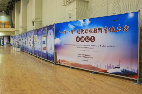 2017年职业教育活动周的序幕即将拉开,由天津市教育委员会主办、由我院制作的《“一带一路”现代职业教育鲁班工坊建设纪实》展览,于2017年5月6日晚,在我院多功能厅完成布展。