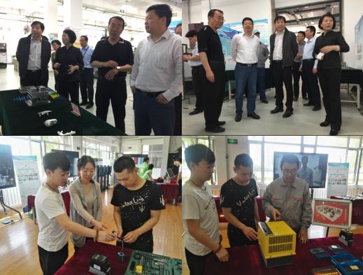 5月9日上午,江苏信息职业技术学院党委书记陆国平、副院长陆锦军带领该院各系负责人由我院领导陪同,来到实训中心体验区参观。陆书记一行对实训场地建设十分关注,详细了解我院围绕国家“一带一路”倡议,把优秀职教成果输出国门的发展进程及“鲁班工坊”的实际授课情况,并对实训学生具有创新思维的兴趣作品表示赞赏。